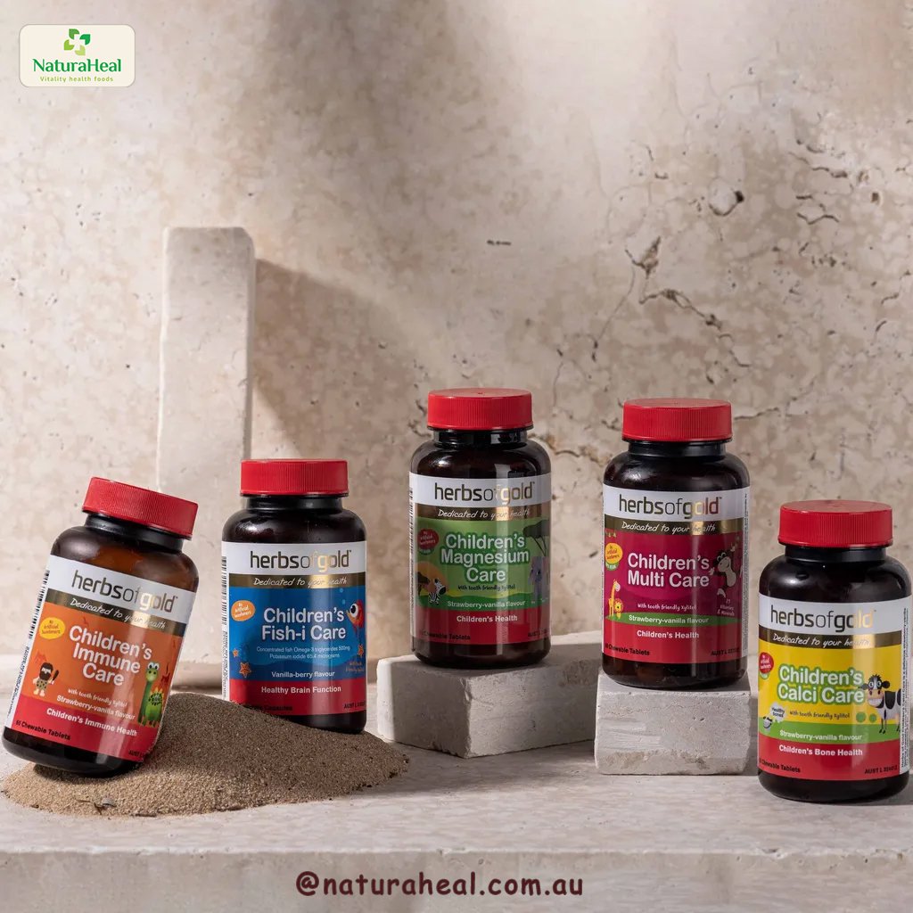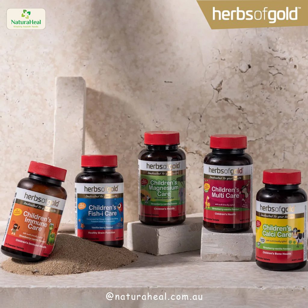 Herbs of Gold Children’s Care range is specially formulated to support growing children’s health with great-tasting, chewable tablets. Each product is designed to target key areas of child development such as immunity, brain function, bone health, muscle support, and overall wellbeing.