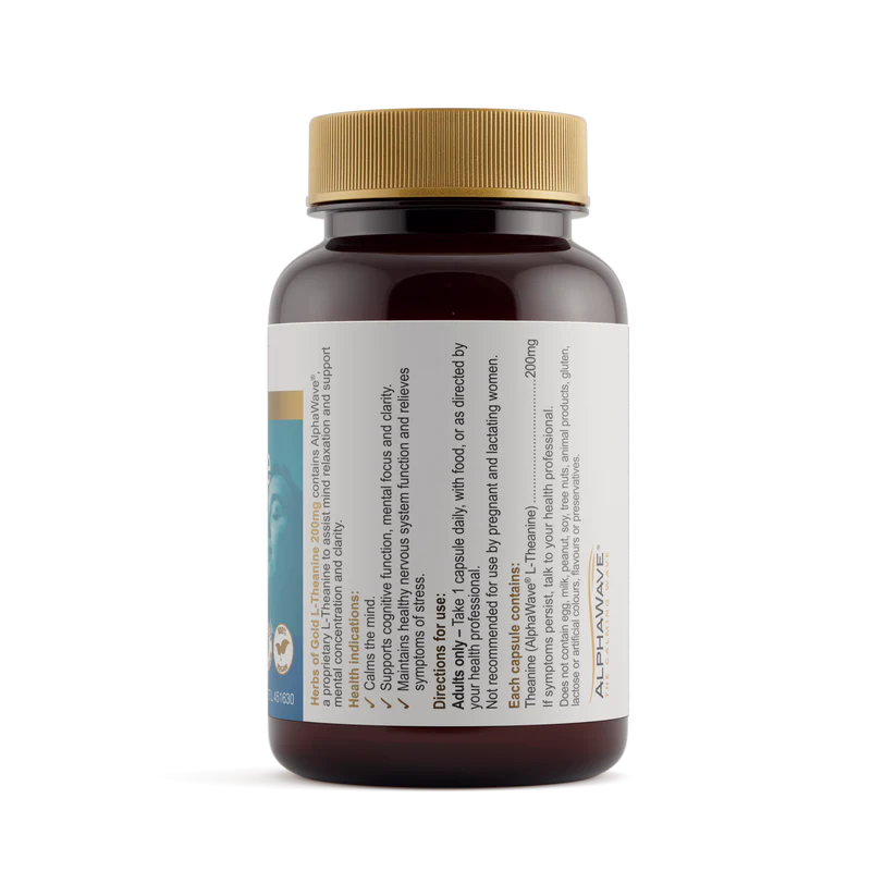 - L-Theanine 200mg supports a healthy stress response in the body and maintains nervous system function.